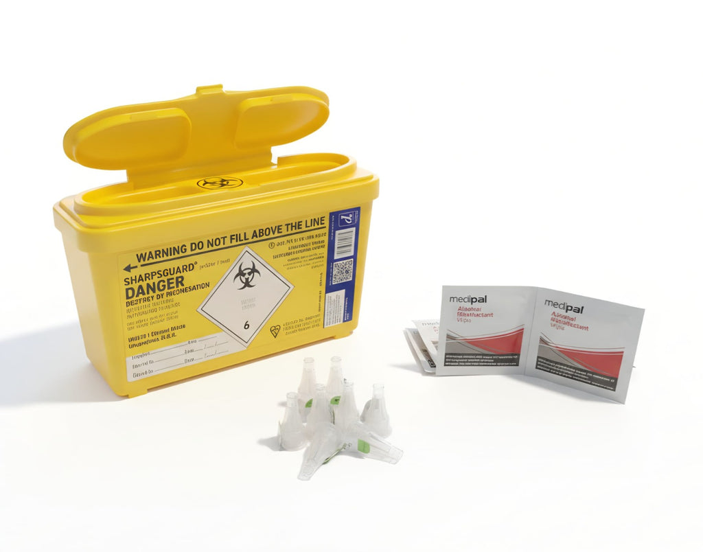 1 × Small sharps disposal bin – for safe and responsible disposal